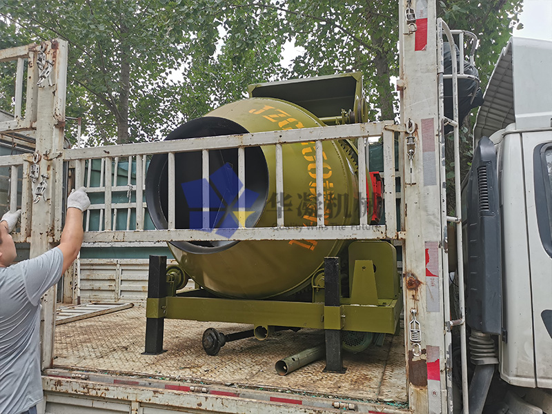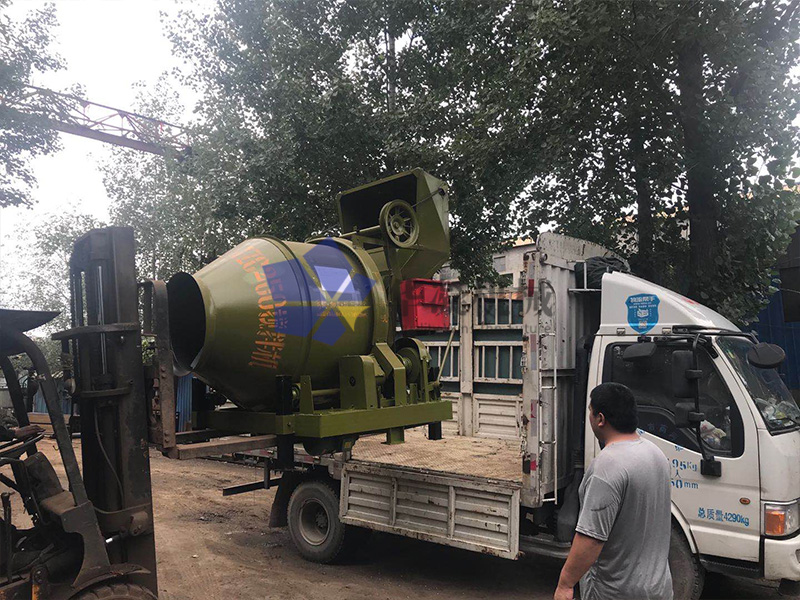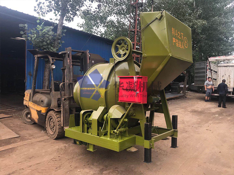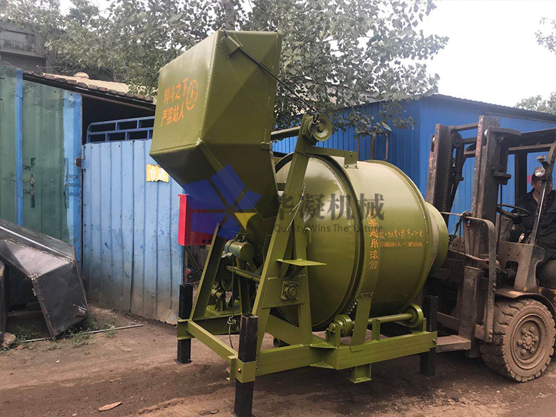 山东滨州客户订购1台JZC250滚筒搅拌金已发货,JZC250滚筒搅拌机出料容量250L,进料容量400L,理论生产率6-8(m³/h),它的长宽高是2200*1900*2580(mm),重量1200kg。